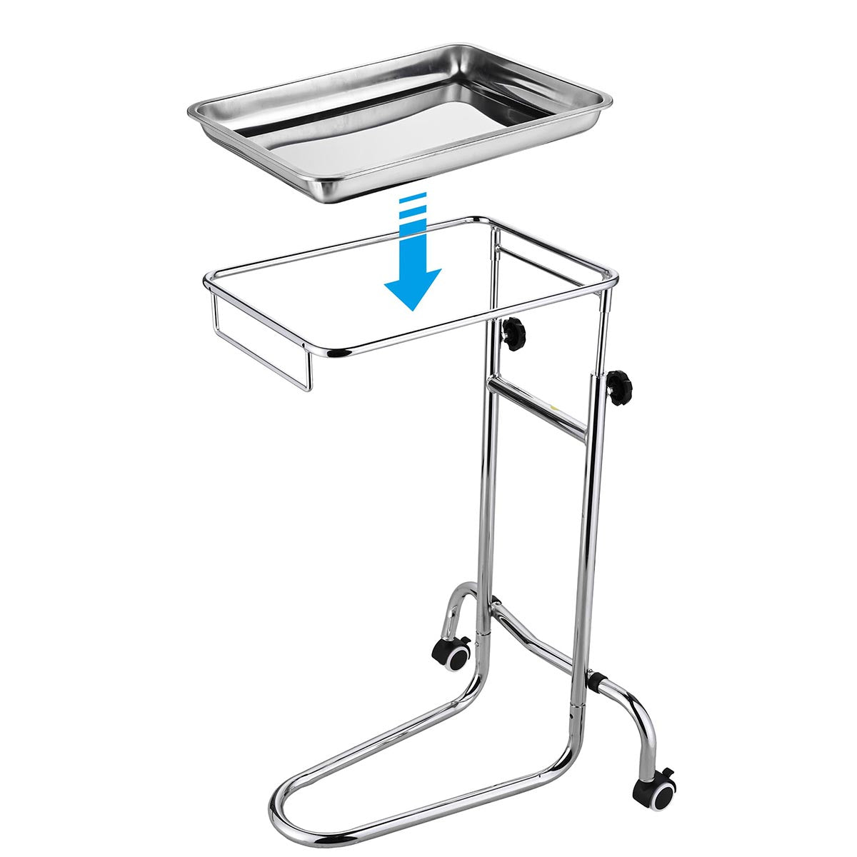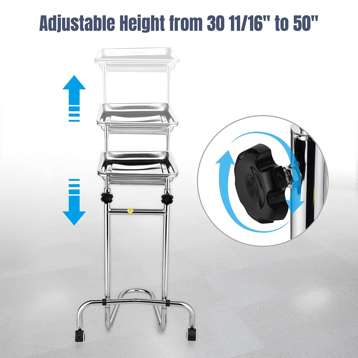 Heavy Duty Stainless Steel | Double Post with 2 Locking Knobs | Removable Stainless Steel Trays | Adjustable Height | Swivel 2 Casters