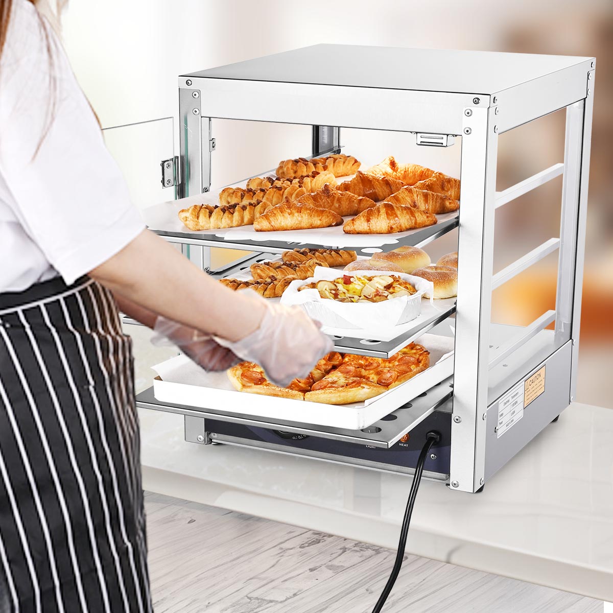 Keep your food fresh and perfectly warmed with TheLAShop 600W 3-Tier Commercial Food Warmer! With a spacious size of 15"x15"x20", you can fit different types of food and 2 light bars offer warm white to make them look even more enticing. Features temperature adjustment ranging from 60 to 185°F to warm pizzas, burgers, chicken, etc.