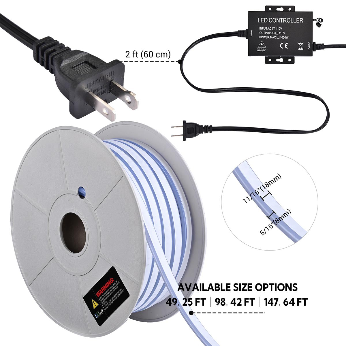Are you looking to outdo your neighbors? Or maybe you just want to bring a little ambience to your living space? Now you can with theLAShop Multi-color Neon Rope Light with APP and RF Remote Control. Flexible & versatile for any kind of decor, this waterproof double sided rope light in size options 50ft, 100ft and 150ft which contains 108 RGB LED bulbs per meter, and offers 16 different colors!