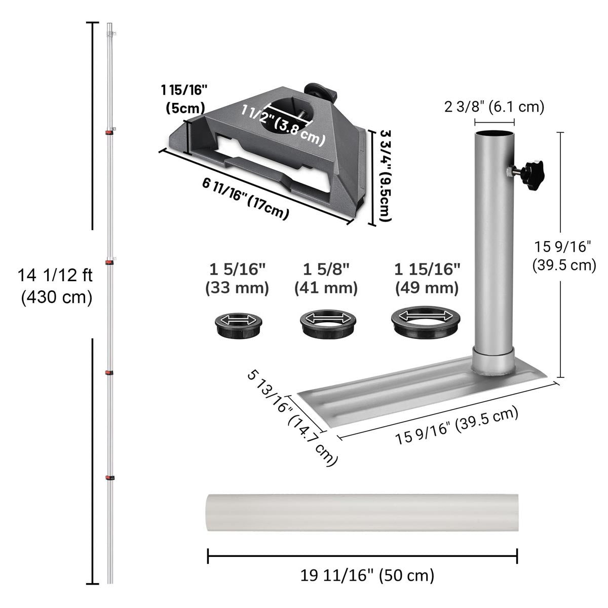 - Hole Inner Diameter: 1 9/16" (fits up to 1.5" OD poles)