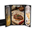 Tri-fold, Tri-fold & Half: fold-out format, great for compact spaces or drink lists.