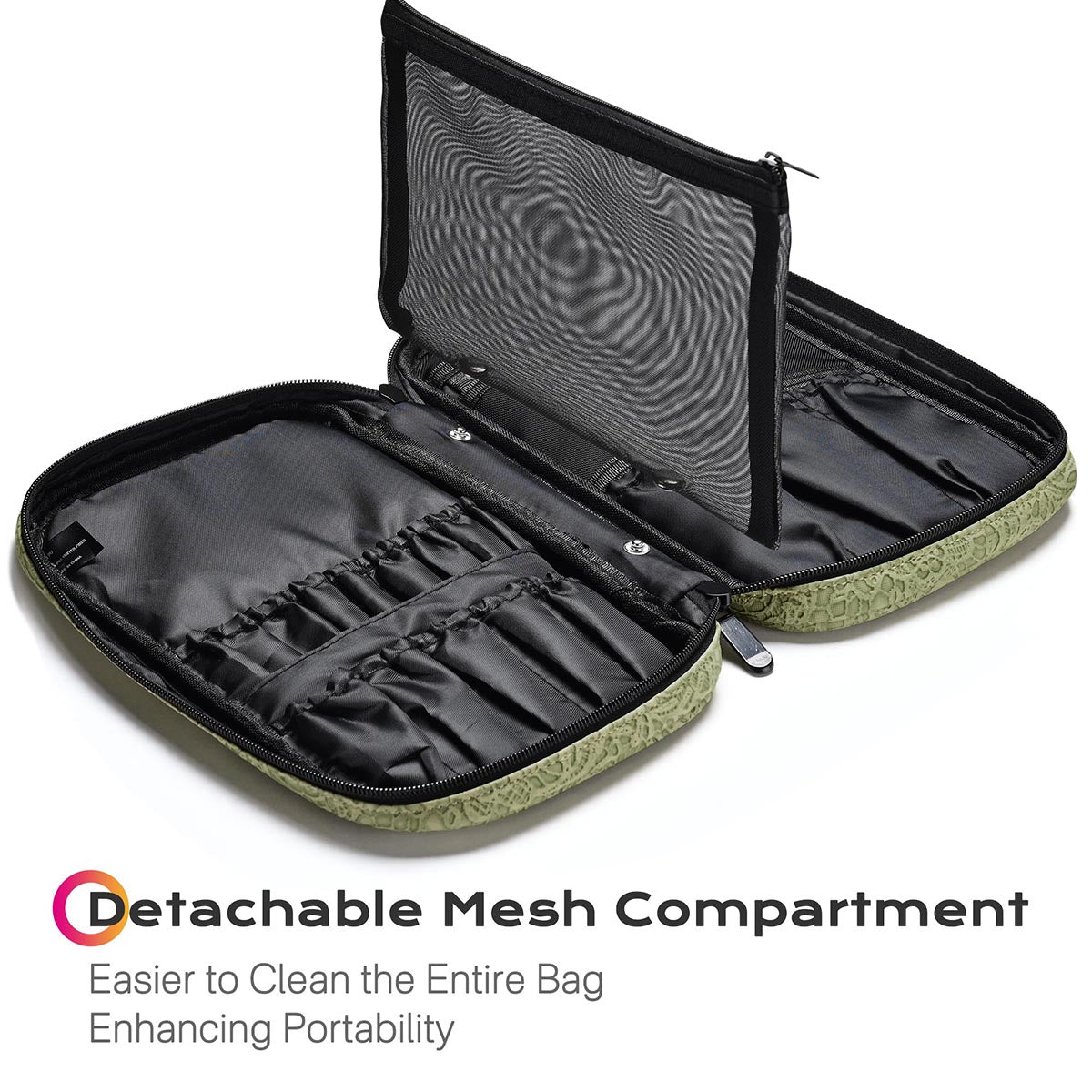 - Large capacity: 17 Slots and several pockets to store all kinds of brushes which is perfect for storing, categorizing and organizing different makeup items