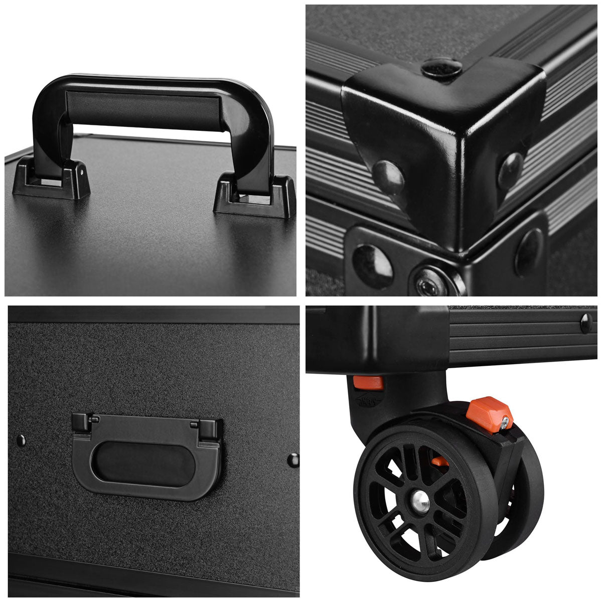 - With expandable table, it can be used as trolley case or mobile workstation with 4pcs swivel wheels