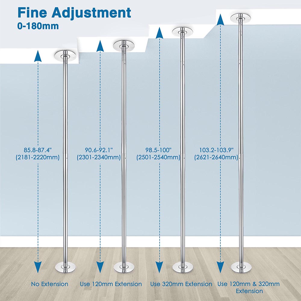 For example, If you are 5'3", then the radius from the center of the pole should be at least 5'3" (about 1.6 meters). We recommend that the ideal free space radius for a pole dancing pole should be 5'3" to 6'.