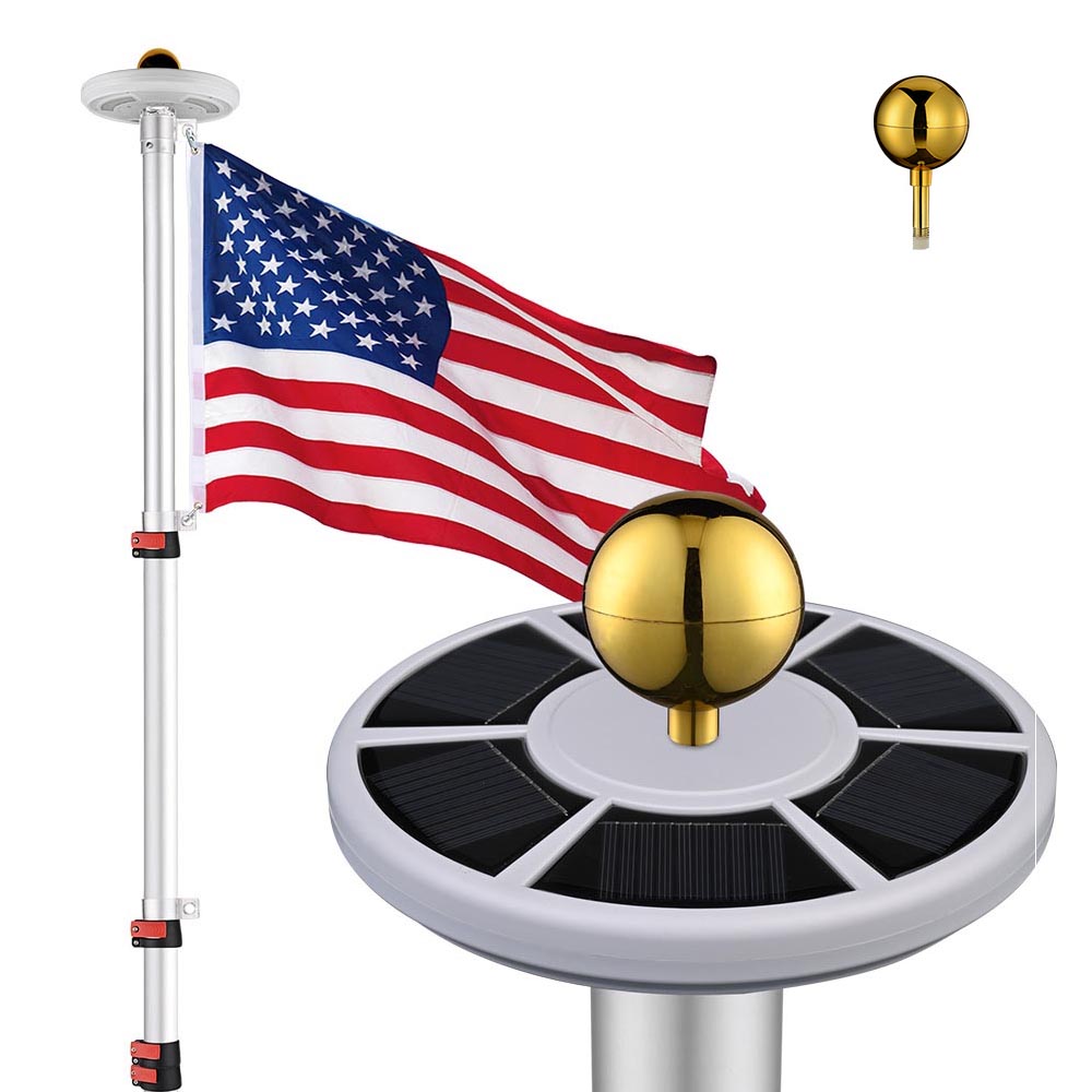 - Solar Flag Pole Light with 136 bright cool white LEDs, it emits 680 lumens of light. Featuring automatic on/off functionality and 2 levels of adjustable brightness, this light is energy efficient and saves you money on electricity. Plus, it runs for up to 20 hours after a full charge!