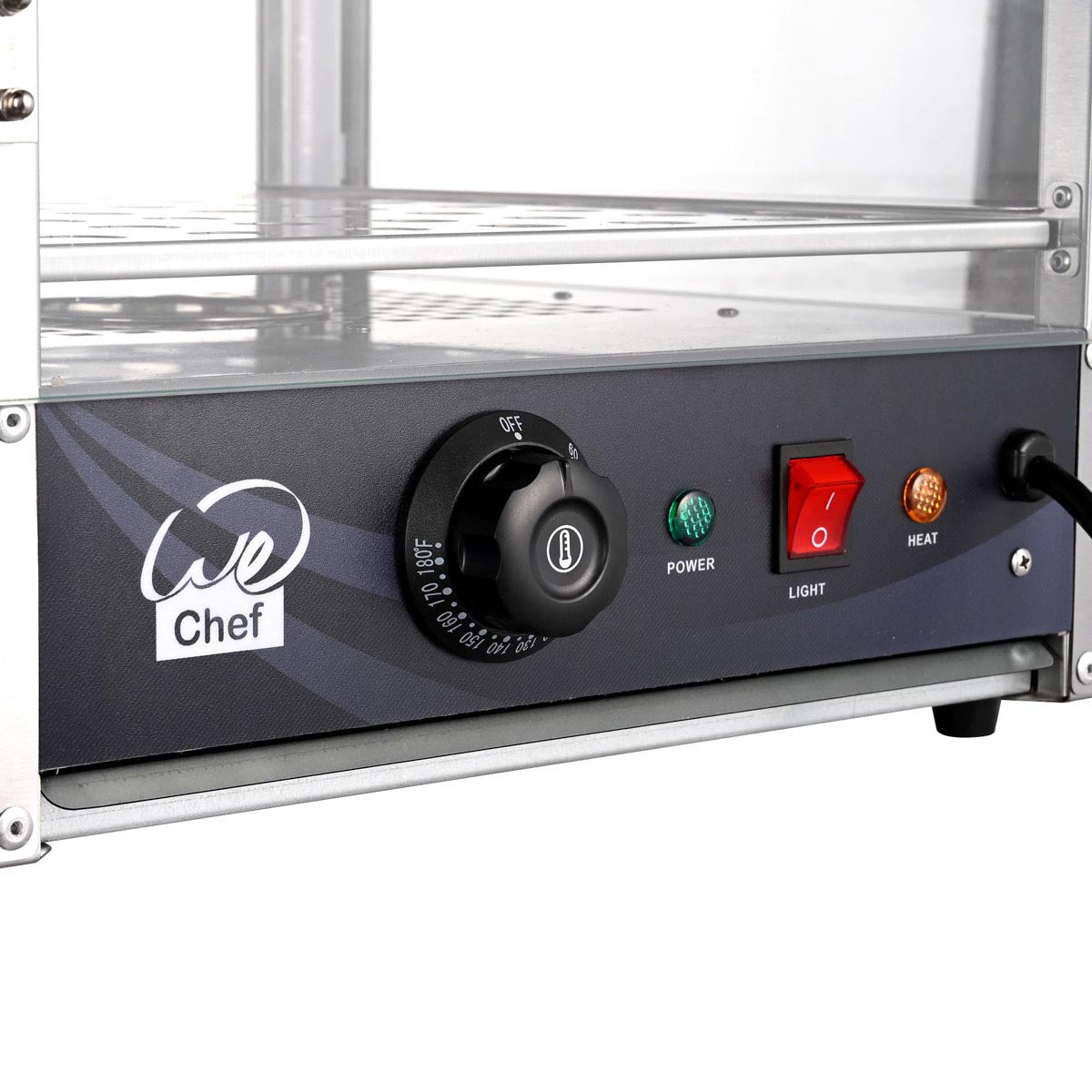 Keep your food fresh and perfectly warmed with TheLAShop 600W 3-Tier Commercial Food Warmer! With a spacious size of 15"x15"x20", you can fit different types of food and 2 light bars offer warm white to make them look even more enticing. Features temperature adjustment ranging from 60 to 185°F to warm pizzas, burgers, chicken, etc.