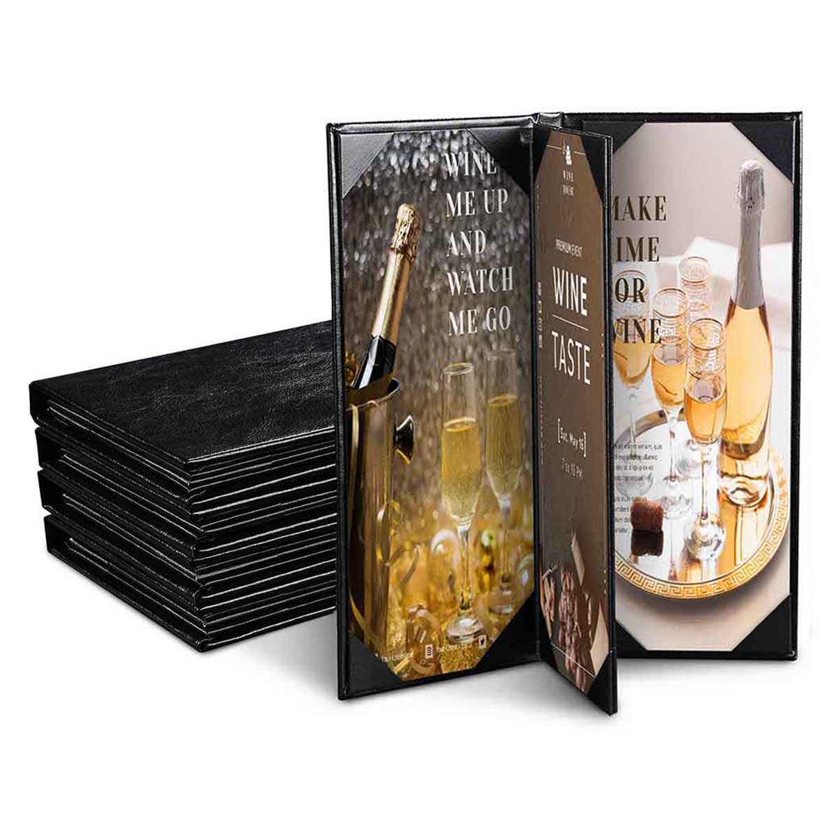 - 5 pieces of booklet-style menu covers feature hardcover design to hold 4 1/4" x 11" pages