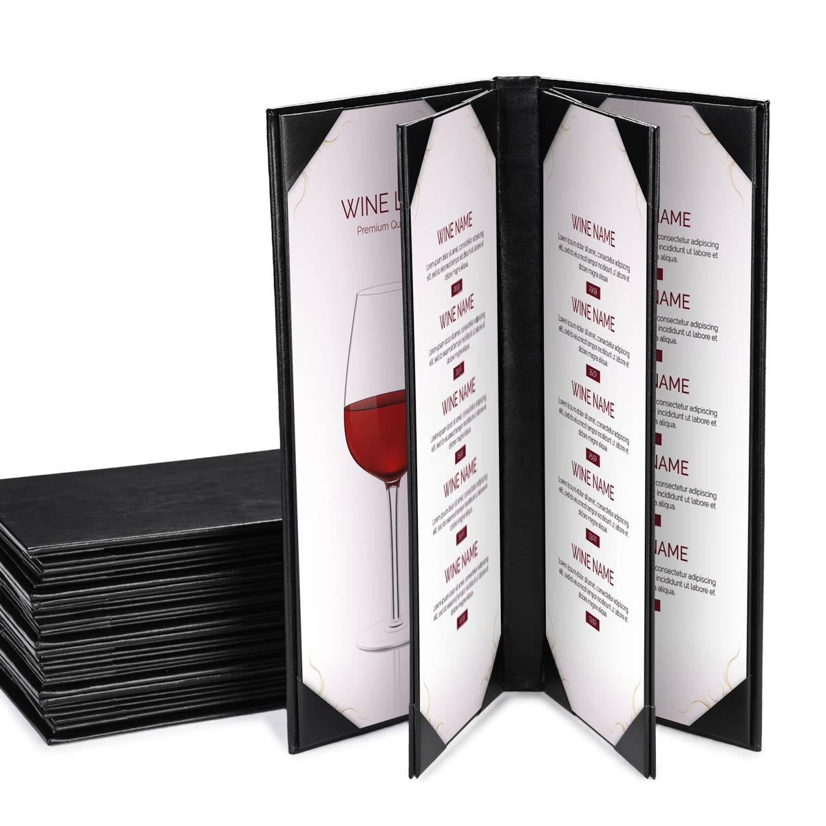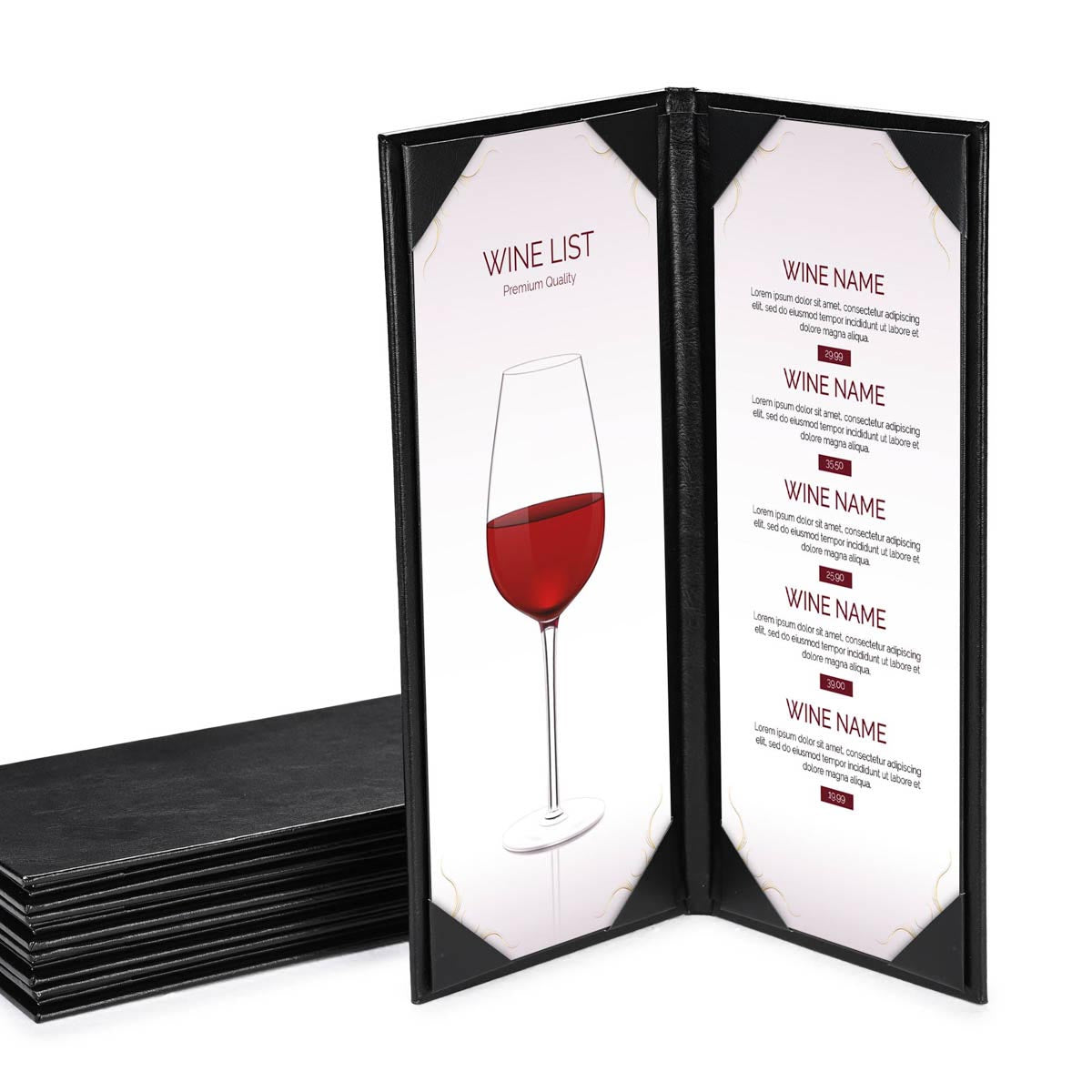 5 Pieces Menu Holders with elegant angled corners, perfectly sized for 4 1/4" x 11" menu sheets. The sleek, professional design elevates any restaurant, hotel, cafe or bar setting. Made of sturdy PU leather with water-resistant surface and soft texture, the holders are ideal for frequent using and showing your unique taste.