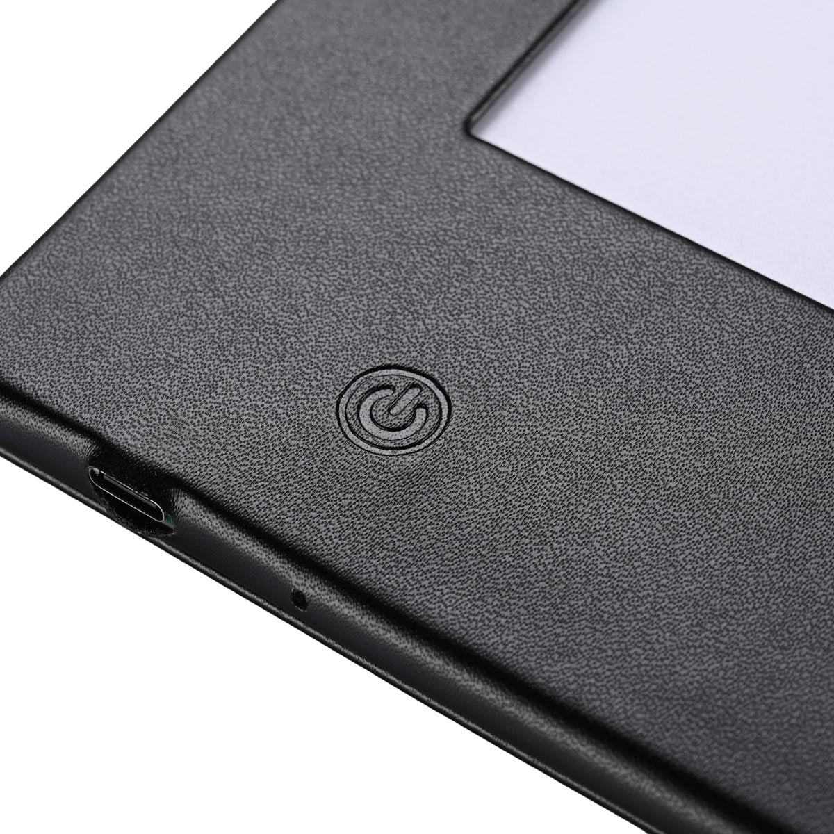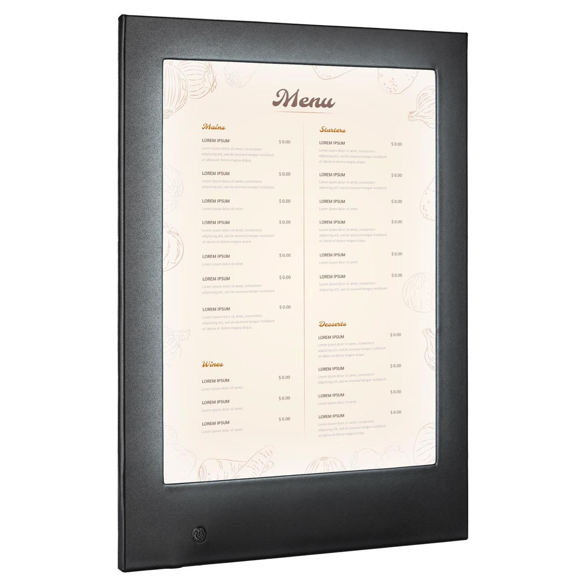 - Rechargeable menu cover with two charging options: USB cord & adaptor