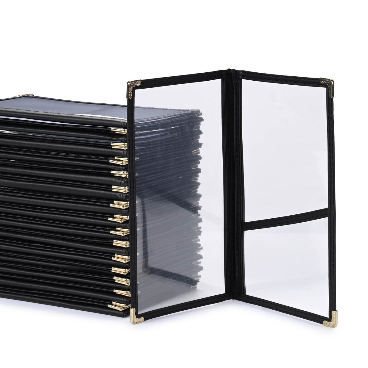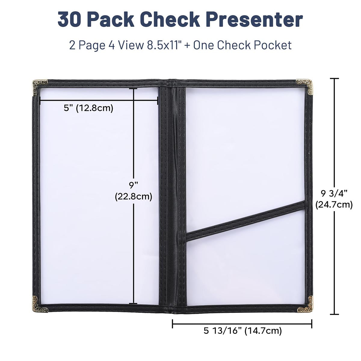 - Elevate Your Brand with Every Check - Set of 30 Check Presenters create a lasting impression for your brand, with 2 clear pockets to fit 5"x9" paper menus and display your daily specials, while keeping the bills or receipts secure, ideal for steakhouses, seafood restaurants, cafes, diners, bistros, wine bars, pubs, hotels