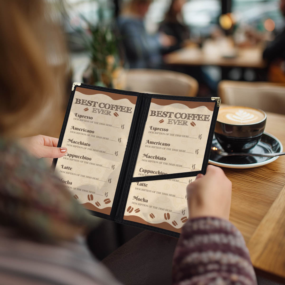 - Instant Upscale Ambiance - Boasts soft-touch material with double-stitched, color-matched leatherette trim on all sides, and corners meticulously decorated with elegant gold-tone metal, instantly upgrading your restaurant or cafe's presentation and creating a welcoming and polished atmosphere