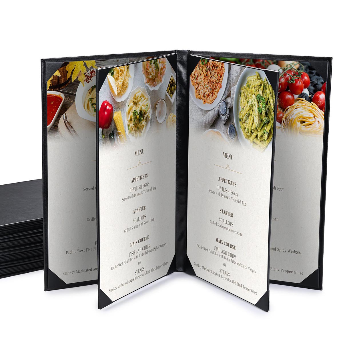 - Menu Cover Styles: Panel, Booklet-style, Tri-fold, Gate-view