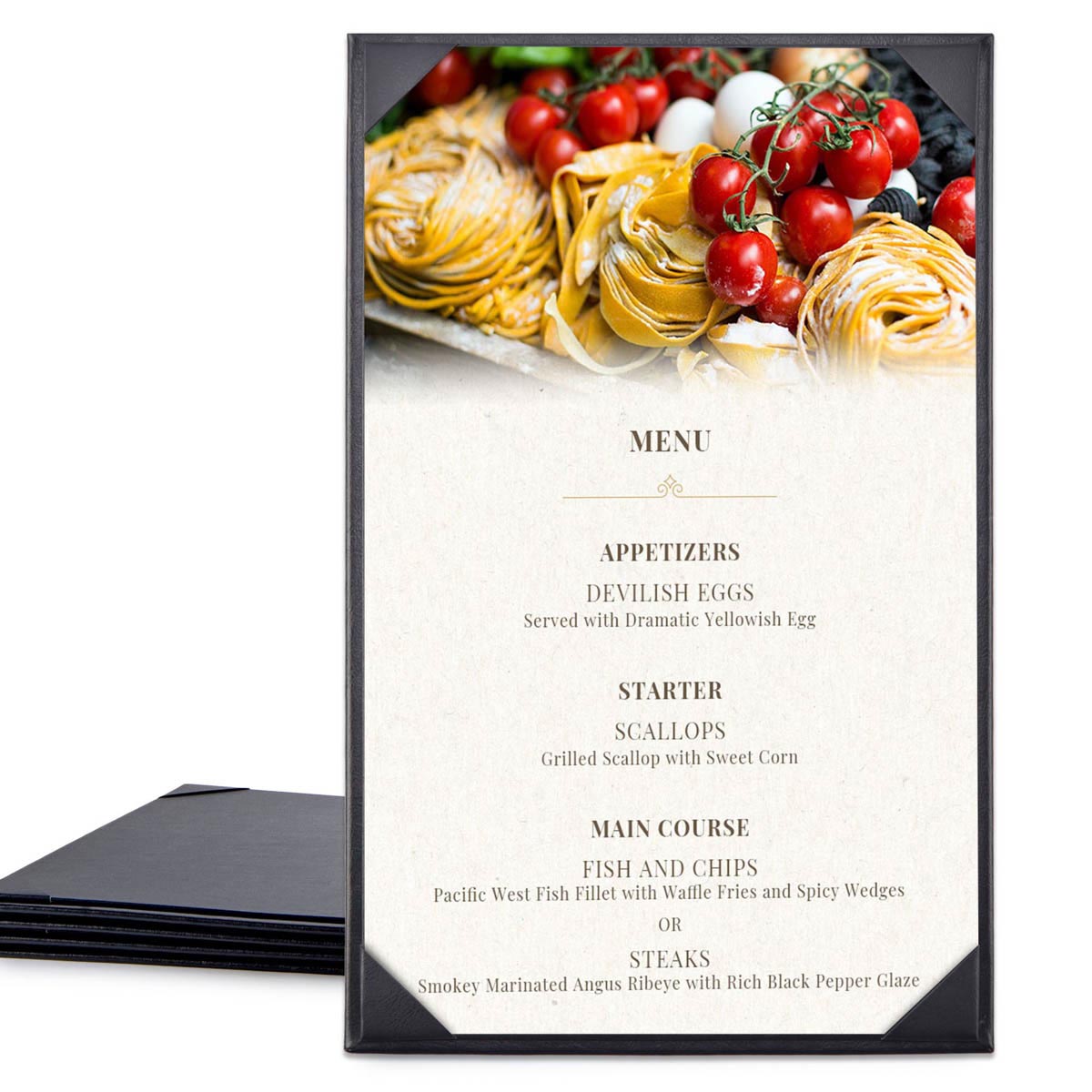 - Accommodates 8 1/2" x 14" menu sheets; Book & Half and Gate-view options also include half pages for wine lists