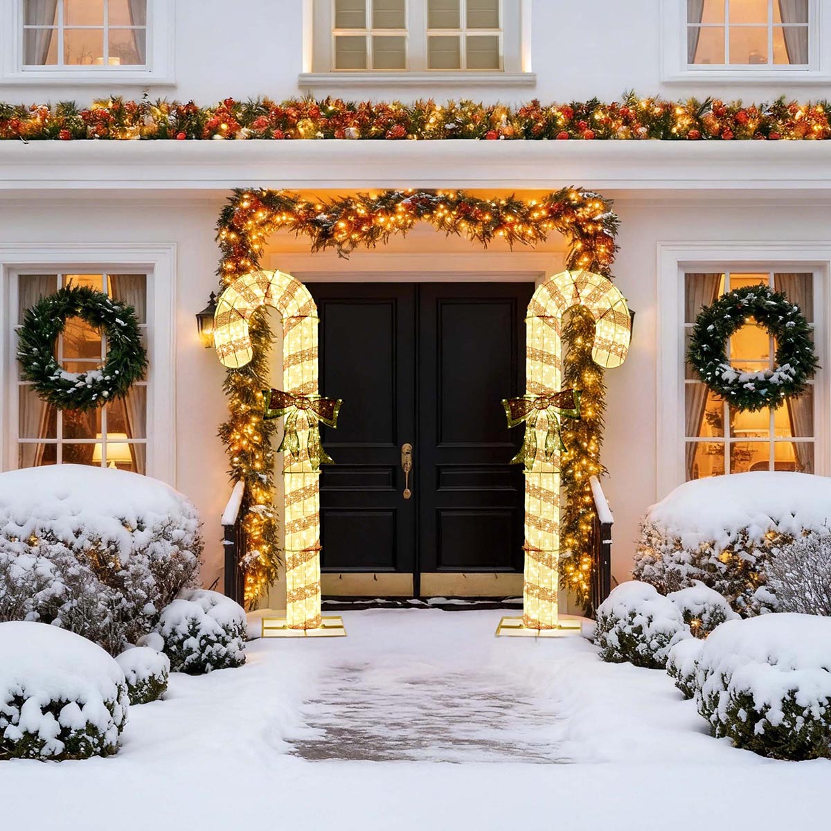 - Embrace the Light of Christmas - This 8ft Pre-Lit Candy Cane Decoration with magnificent size radiates a soft, warm glow that embodies the joy and blessings of the season. Grace your yard with the gentle illumination that reminds you of Christ's love and the shepherd's care