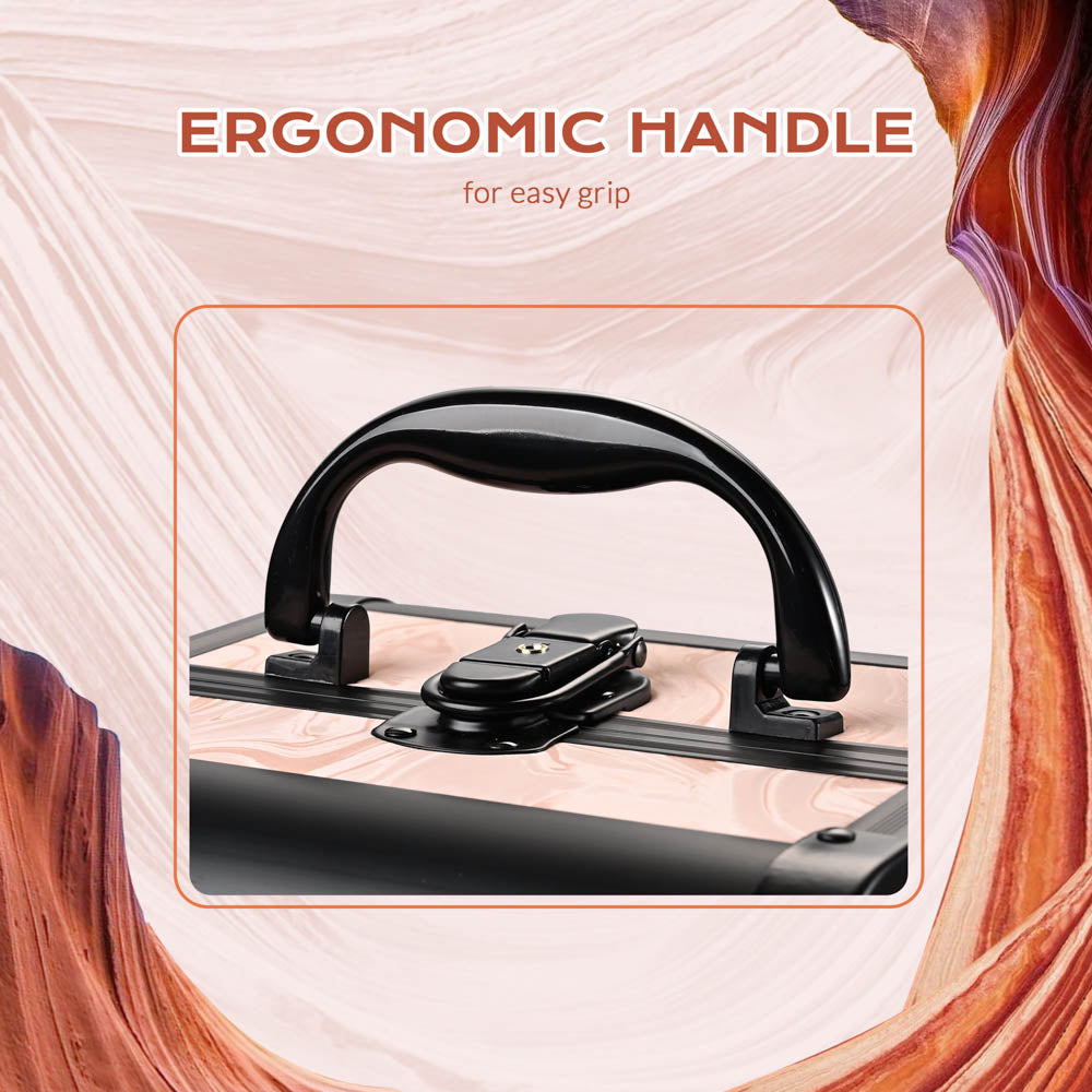 - Features an ergonomic top handle for easy carrying to any place, and a lockable latch for keeping your cosmetics safe
