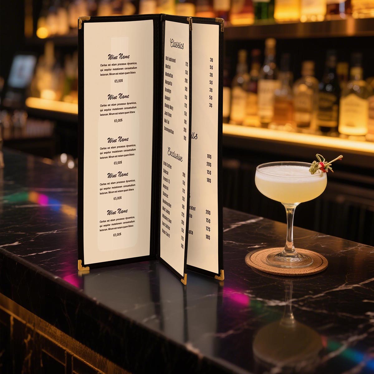 - Available in multi-page configurations to perfectly present your 4.25"x14" wine list, specialties, and desserts all in one