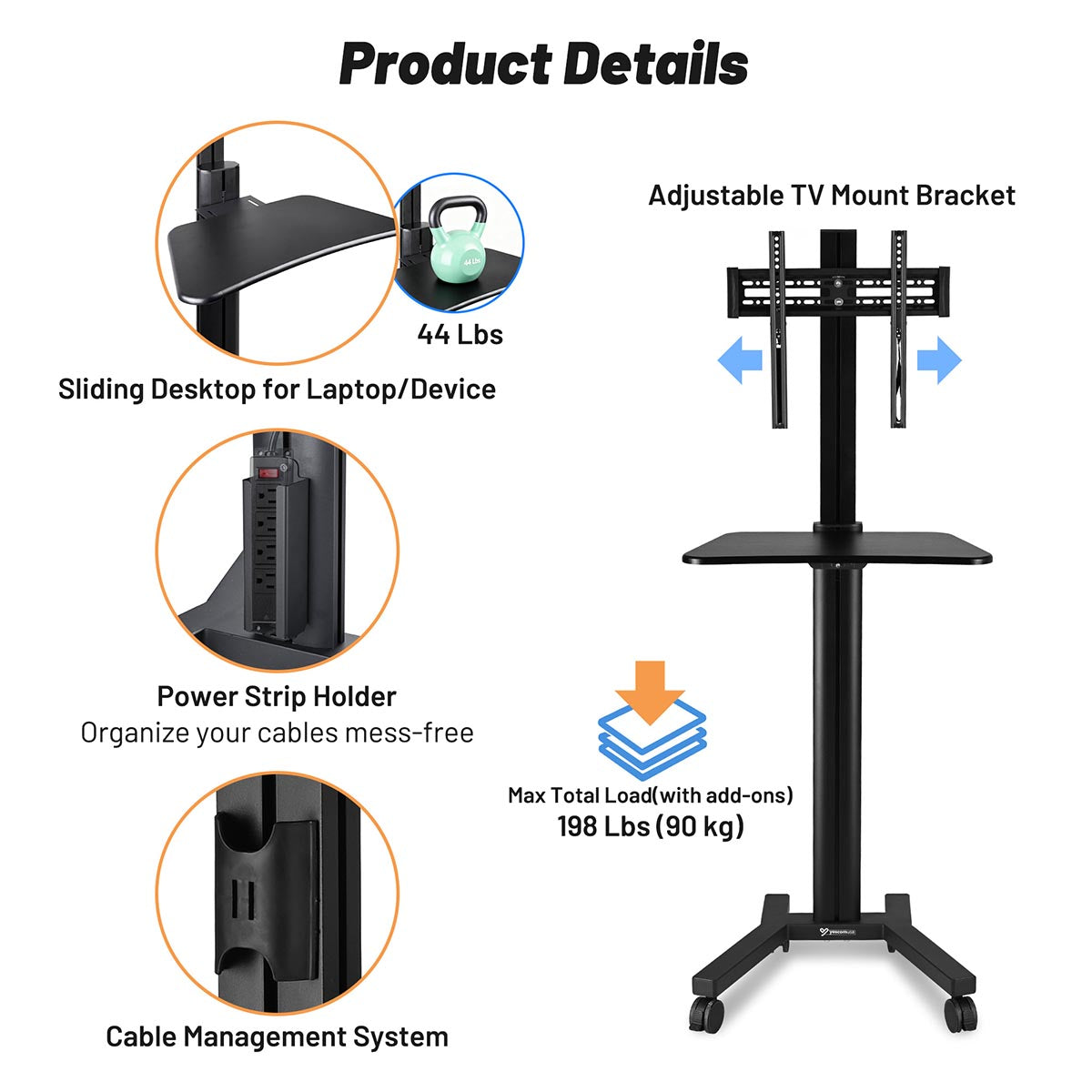 - Confidently support TVs up to 66 lbs on the bracket and a total of 198 lbs on the stand, thanks to its reinforced aluminum construction