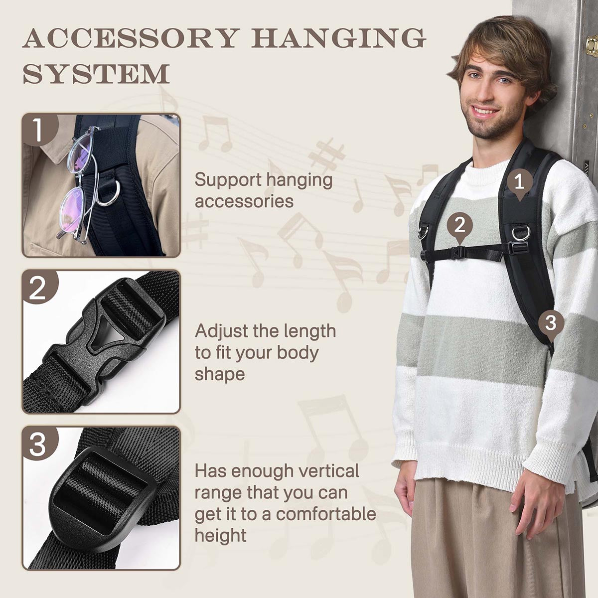 - Carry Like A Pro - Pairs perfectly with our acoustic or electric guitar hard cases (sold separately), transforming your guitar case into a comfortable backpack. The backpack strap provides added stability, making even long treks feel effortless, whether you're heading to a local jam session or a cross-country tour