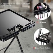 Master your hairdressing skills with our Folding Salon Tray! The built-in appliance holders keep your gear organized for quick access. Our 4 coloring magnetic bowls help you distinguish between dyes and prevent spills. With 360-degree rotating wheels, you can glide smoothly and silently to reach your clients. Take your styling to the next level!