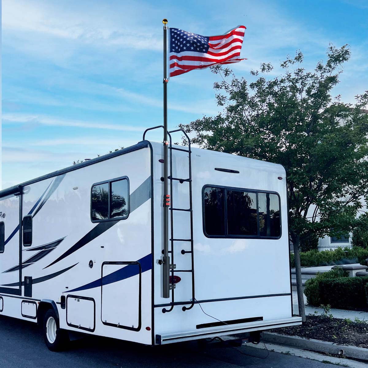- Essential RV Upgrade - RV Ladder Mounted Flag Pole Holder allows you to fly a flag from your RV ladder, sprucing up your campers or trailers with patriotic display to showcase your pride on the road