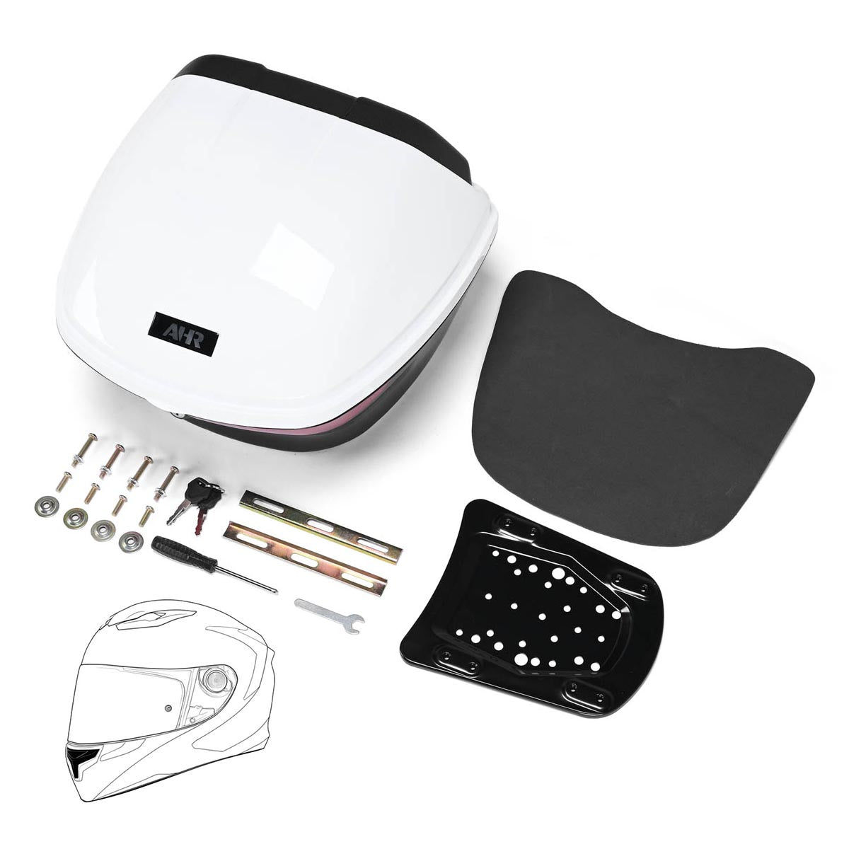 - Superior Durability & Weather Resistance: Crafted from high-quality PP material, this top case resists wear, scratches, and impacts, ensuring long-lasting performance. Its sleek, gloss-white finish is easy to clean, while the electroplated metal mounting plate adds rugged reliability.