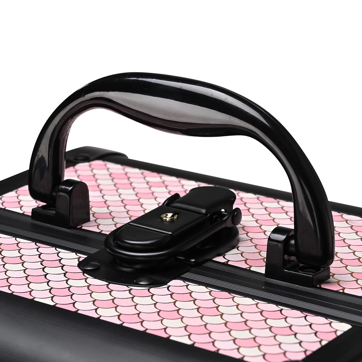 Nylon Makeup Train Case - convenient outdoor carrying with belt and handle. This product is an upper case of 2in1 Nylon Pro Rolling Train Cosmetic Makeup Case Black.