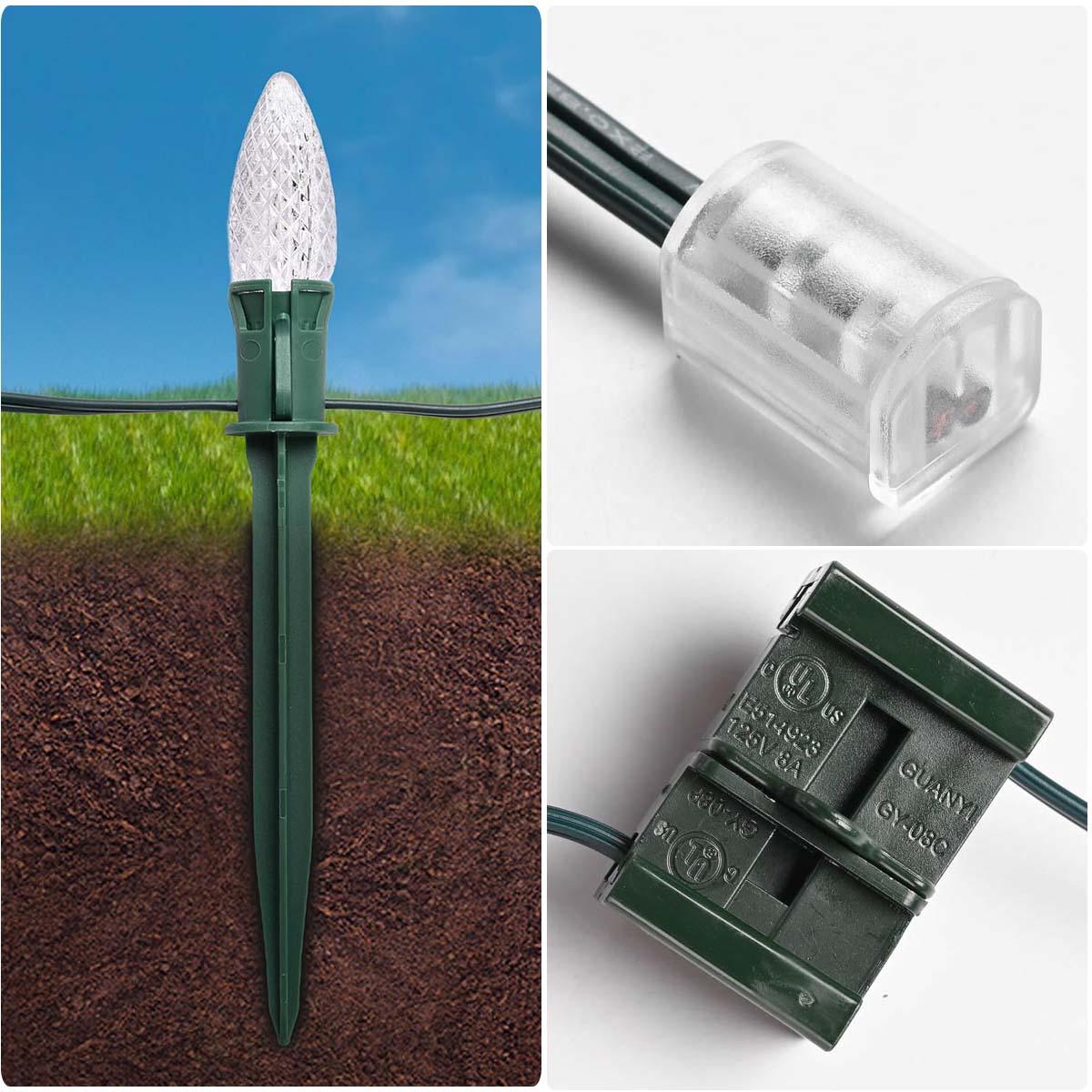- All-Inclusive Kit for Instant Inspiration - Unleash your creativity with this all-in-one sample set. Featuring mini LED string lights, C9 sockets, SPT-1 electrical wire, splitter and connectors, C9 bulbs, and more, it provides everything you need to visualize and design your ideal outdoor lighting scheme