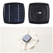 - Solar Operated Lighting System: Solar LED light bars are located on each long rib and stretcher, charging during daytime and offering energy-efficient lighting at night. With USB port on the panel for emergency charging on cloudy days