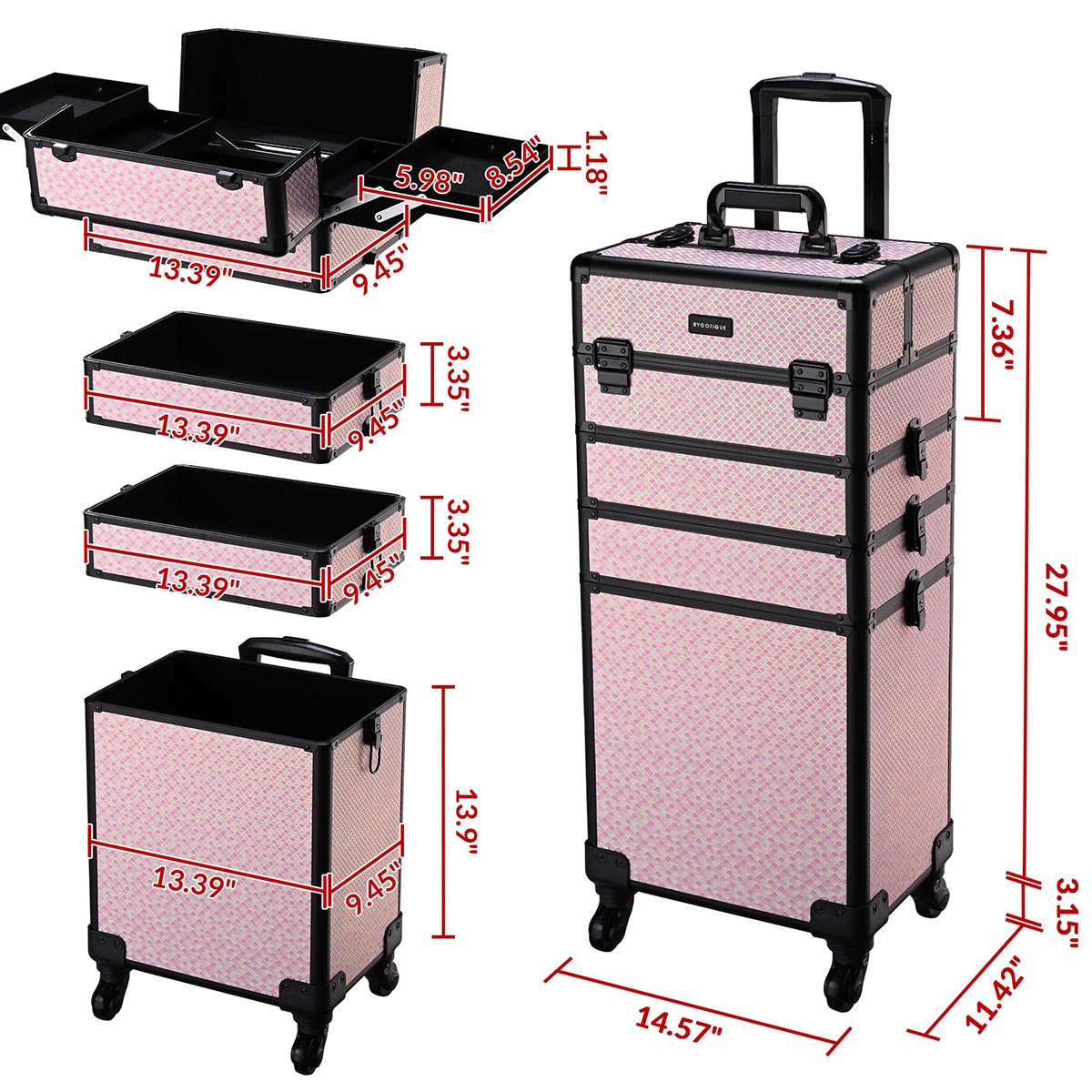 - 12" x 9" x 19" Rolling & Shouldering Carry makeup case