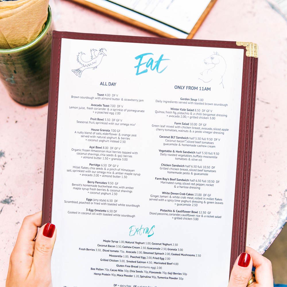 - Easy-to-use slide-in design for sliding the menu paper in from the side in seconds for quick daily menu switching.