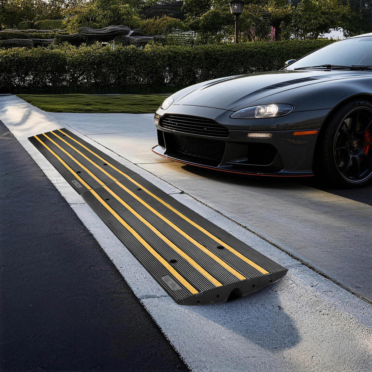 - High Visibility & Safety - The yellow safety stripes ensure nighttime visibility, while the textured, non-slip surface provides exceptional tire grip. The shock-absorbing bottom guarantees a stable, vibration-free crossing that feels as solid as the road itself