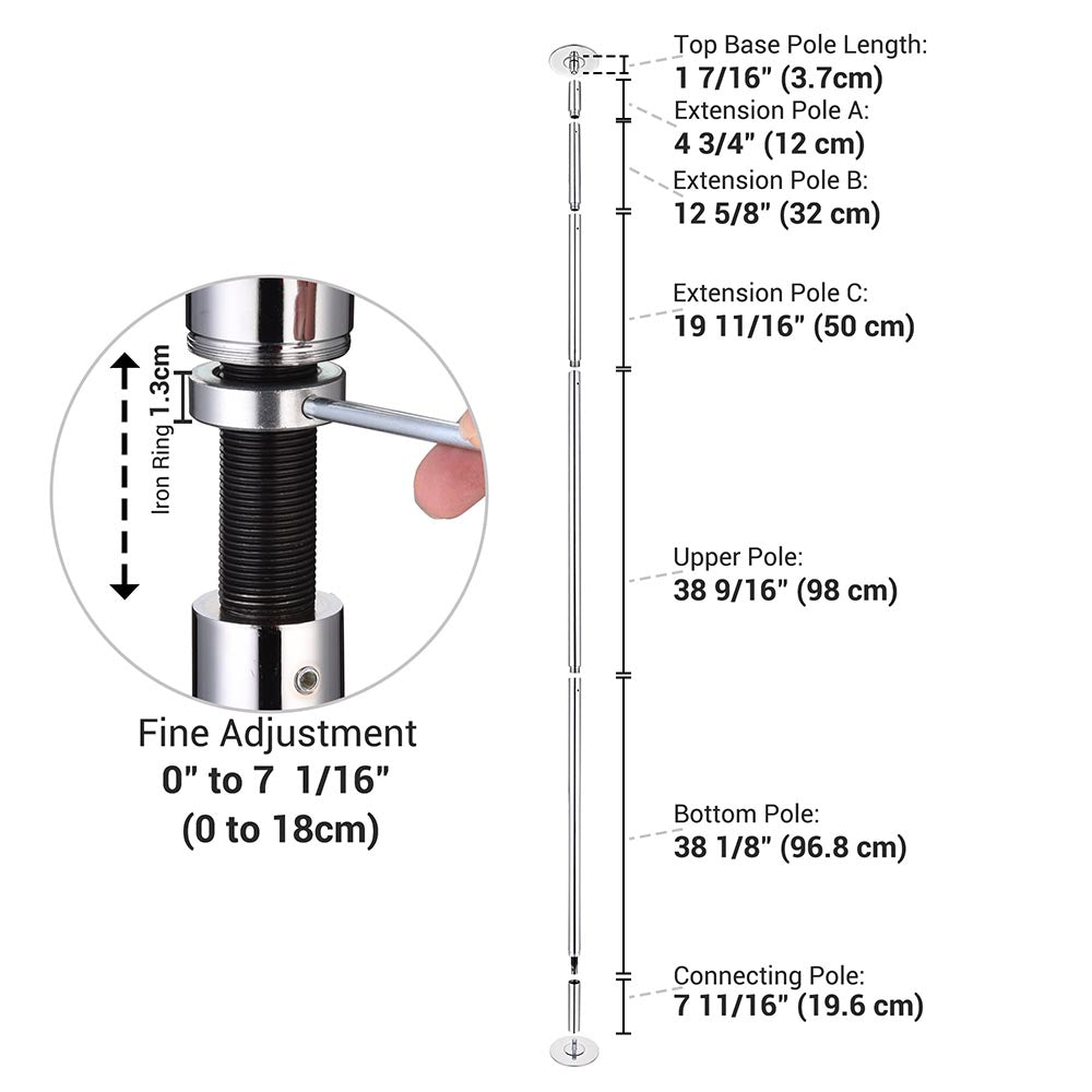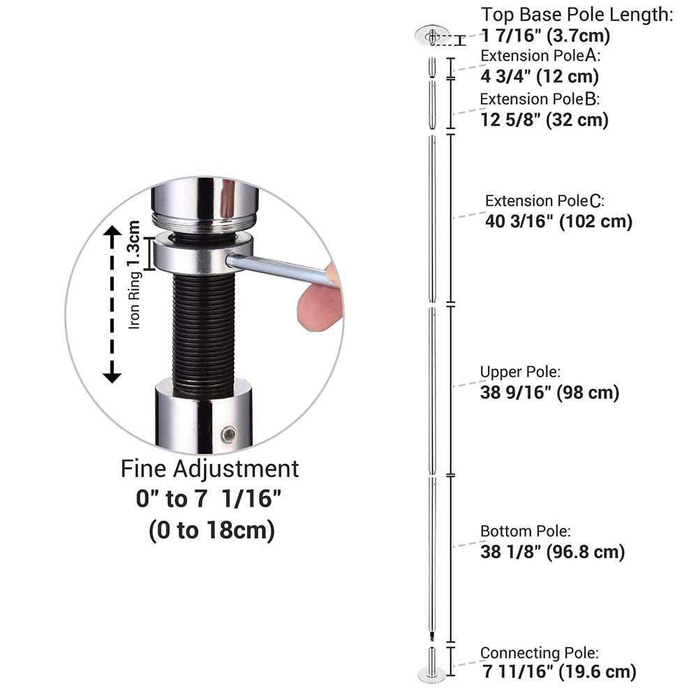 For example, If you are 5'3", then the radius from the center of the pole should be at least 5'3" (about 1.6 meters). We recommend that the ideal free space radius for a pole dancing pole should be 5'3" to 6'.