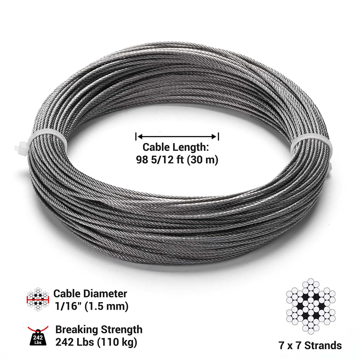 - Premium Support - 100ft Stainless Steel Cable, crafted from high-quality 304 stainless steel, offers unparalleled durability, rust resistance and corrosion protection. Suitable for creating stunning displays throughout your home, even in humid areas